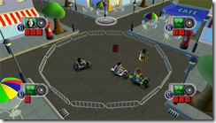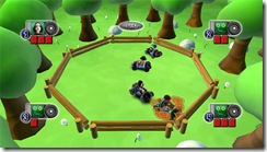 I haven’t done these in a while. So here it goes. The first one, Avatar Bumper Cars is what you would expect. You drive around, and bump into other cars until they fly off the screen in different arenas. Near as I can tell in the trial mode, you only get one arena, which really limits the appeal of the game, because of the extremely limited gameplay it doesn’t make me want to buy it. The graphics are actually pretty good, though they have that typical “avatar look” to them that seems to sink into games that use them as heavily as this. Everything is real smooth and shiny and whatnot. It has support for 4 players, but only locally, so there’s another problem. But the single player … even on the “extreme” difficulty the AI is braindead. Playing it on the default medium mode, the game was over in about 30 seconds. On “extreme” it took a little longer. But not by much. And the control is that terrible tank style control that’s similar to the old Resident Evil games. So horrid controls, no Xbox Live support and totally braindead AI. Yeah, stay away from this one. Far far away.