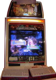 Now I have never actually played the arcade version of this. This is "The Typing of the Dead". I played it on the Dreamcast, and most recently the PC because it's one of the few games my lowly old Acer Aspire netbook can run and run well. It's basically House of the Dead 2, only you're typing out the words, letters, numbers, phrases, etc that are in front of the zombies to shoot them down. The best part about it is the fact that the characters are walking around the game with keyboards slung down in front of them with giant Dreamcasts powered by a giant battery strapped to their backs. Not to mention the game's famously terrible dialogue and addictive gameplay make it a must have. The closest right now we have to that classic (on the 360 anyway. Don't know about PSN) is the horrible Type Attacks.