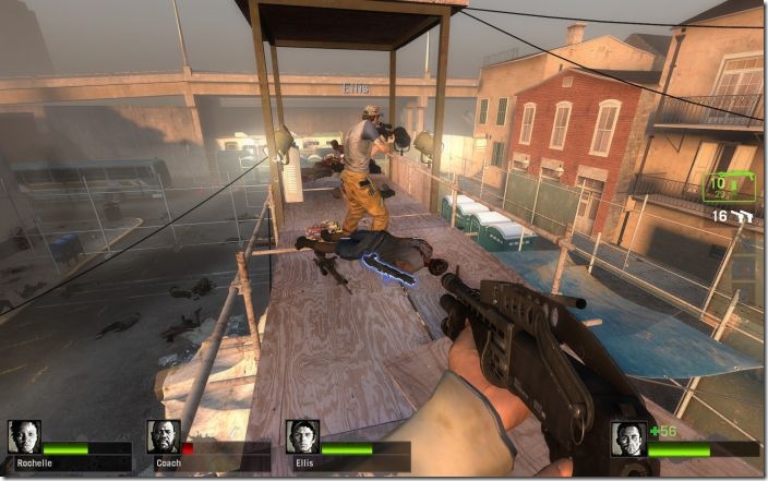 The common infected this time around are pretty much the same as before except they’re definitely one upped graphically and have a lot more details to them. The game is a hell of a lot gorier than before. And the new infected that I’ve come across so far are awesome. There’s a zombie with bullet proof armor on, the spitter that spits out acid, naturally the tank is there with a slightly new look along with new looks for the smoker and the hunter. The witch looks exactly the same, butt she walks around now which definitely makes it harder to avoid her. The jockey is irritating as hell, but in an awesome way. And there’s a new infected that just takes off running after you, grabs ahold of you and starts slamming you against the ground. There are others, but either I haven’t come across them yet or they aren’t in the demo.