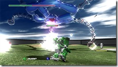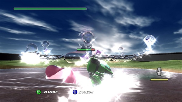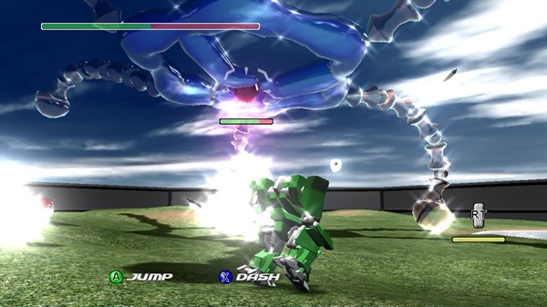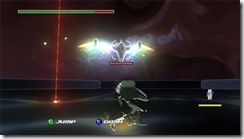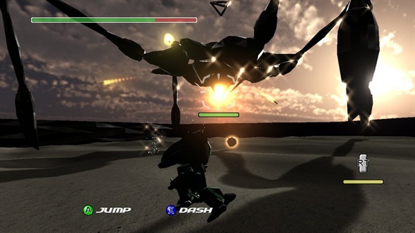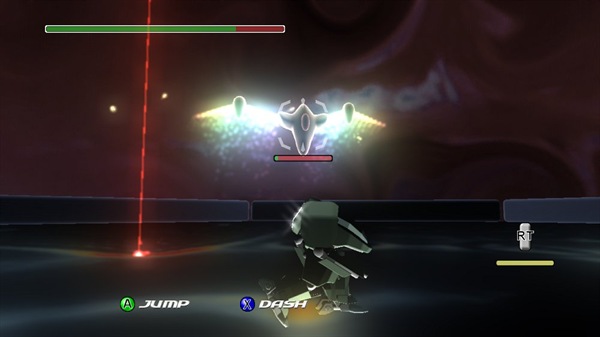 The gameplay is pretty simple, you run around destroying this great big screen filling enemy. When you shoot, it automatically locks on to a target, you can jump and you can dash. Now, I’m not a big fan of the auto targeting, I’d rather target the thing myself personally and it really did take away from the challenge drastically. But from the “how to play” part, it does have manual aiming for the multiplayer which DOES support either System Link or Xbox Live … which is a HUGE plus. Although it only supports 2 players. I would like to see 4 to 8 players personally, I think that’d be pretty comfortable.