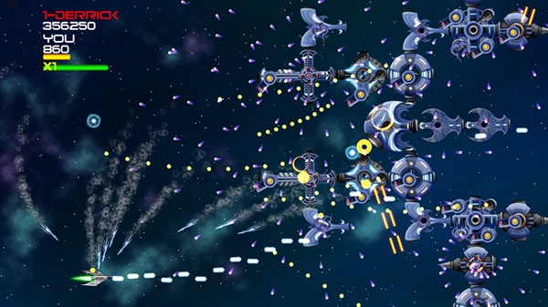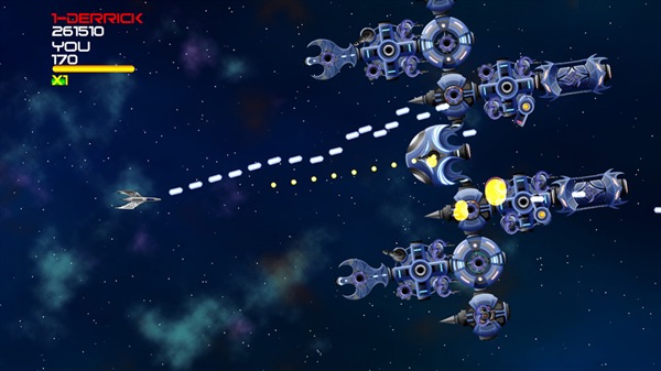 Graphically, the game isn’t anything spectacular, but it does it’s job and it does it well. All the shots are very easy to see, the frame rate keeps constant and the two ships and various weaponry are decently detailed. If the starfield in the background changes, you aren’t going to notice it too much because you’re going to be too busy dodging bullets. The sound is just awesome with kick ass music, bass thudding explosions and the typical sound of the shots being fired you would expect from an old school style shooter like this. Nothing wrong with the presentation here.
