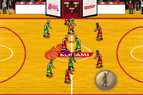 Konami released this browser based game with ads during halftime recently (which can be found right here) called Double Dribble Fastbreak which keeps that same, fluid 2 button gameplay and adds some extra elements to it. And now this game is on the iPhone and iPod Touch for 99 cents.