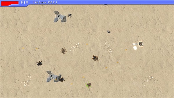 Do you really hate spiders. I mean, REALLY hate spiders. Not creeped out by them like you’re doing to run screaming every time you see even a Daddy Long Legs … I mean hate them to the point that you want to kill every last one of them until the Earth is devoid of the damn things. Where they’re in hiding below the ground to avoid the wrath of your boot to eventually mutate and evolve under there and kill us all. Then this game is for you, because that what you’re going to be doing. Killing spiders. Lots of them. With a machine gun. Only these spiders are as big as you are and can kill you within a few seconds. This game plays out a little bit like an overhead version of a previous Xbox indie game called Jonny Crush, just without the variety in enemies, weapons, environments and polygons. Not to say that’s a BAD thing of course. Spiders! has all the basic elements needed to be a good top down, dual stick shooter. And isn’t a bad game per-say, it just doesn’t go beyond those basic elements to make something special.