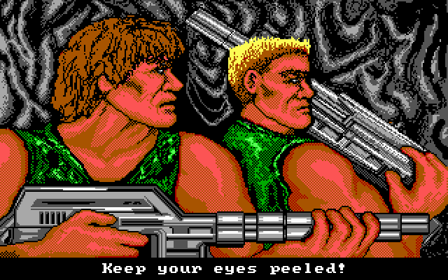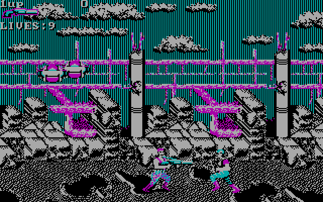 Why the DOS version? Why not the arcade version. Or the NES version. Because back in those days I didn’t get to a lot of arcades and I mostly had an old PC to work with, so this is the version of it I would have played if I didn’t have an NES. Don’t judge it by the piss poor EGA graphics though, it plays great and is just as balls hard as any other version of the game. I tried to play it earlier and didn’t even make it past the first level, gonna have to try again once I have a little more patience and can remember where everything is. Considering what PCs were back in 1990, and the fact that they couldn’t force people to buy a 386 for this when most people were still running either an 8088 or a 286, this isn’t a half bad port and is at least worth trying for those of you who are curious about what we had to deal with as far as arcade ports back in the day. I was going to put the original Contra for DOS on here as well, but that’s an unplayable atrocity of a game. Thankfully I never played it back in the day and stuck with the NES version. PCs of the day just weren’t set up to handle a game like that. You just use the arrow keys to move around and aim and use the 0/Insert key on your numerical pad to jump and ./Del to fire.