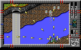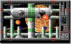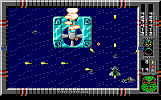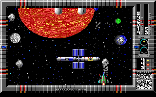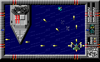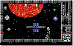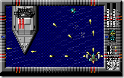While there isn’t anything particularly SPECIAL about it, it’s a fully playable and damned impressive vertically scrolling shmup with sharp, detailed 16 color EGA graphics (with parallax scrolling. Trust me, it was a big deal back in the day.) and some GREAT music by Bobby Prince that I unfortunately never got to experience until today because the PC I had to play this game at the time didn’t have a sound card. Hell, the music alone is worth the download, and I wish I had it to stick on my iPod, it’s that good with a monstrous 20 song soundtrack (granted, a few of them are the typical short “You’re dead.” tunes that I tend to hear a lot) … and there are a grand total of 30 sound effects in the entire game. With one voice sample that says “Game over, man!”