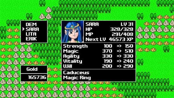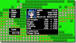 Unfortunately, this game seems to require some grinding because the place I’m at in the game my entire party can just BARELY make it through the REGULAR battles in this particular dungeon … let along stand a snowball’s chance in hell against the boss of this area. So I have elected to grind the hell out of the overworld before I really start on any of the actual story points, which you don’t have to worry about my spoiling … because it DOES have a story that I’m not even going to get into here. From what I can tell so far, it’s not going to win any awards, but it has made me laugh a few times which is always a good thing because there aren’t many games that LITERALLY make me laugh storywise.