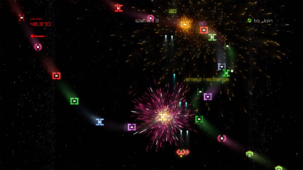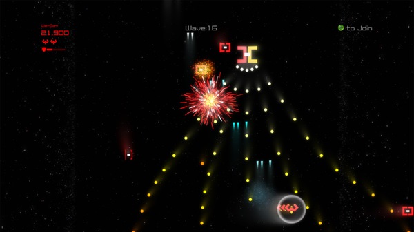 Think Galaga or Galaxian, only instead of being limited to moving left and right you can move your ship anywhere you want. That’s basically how this game plays, with the same antiquated single hit kills (though it does have a shield you can use so long as you have enough juice for it) that, while done right, are fine … though unnecessary in today’s games and only serves to suck the fun out of them when they’re not done right.