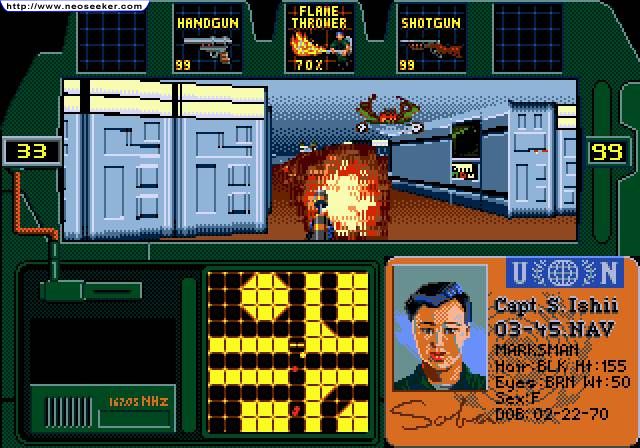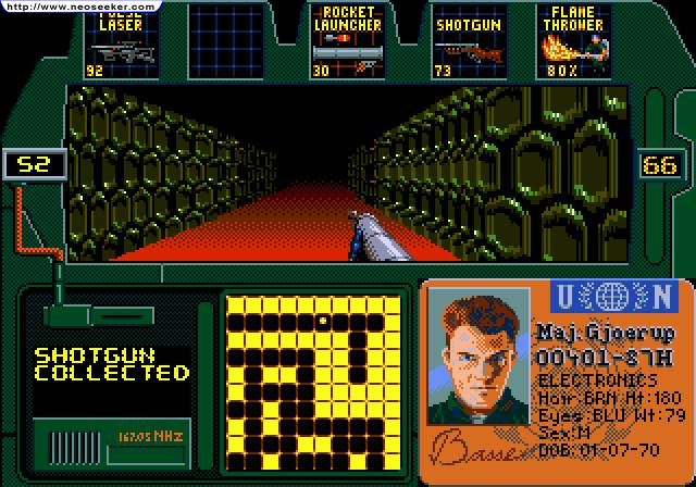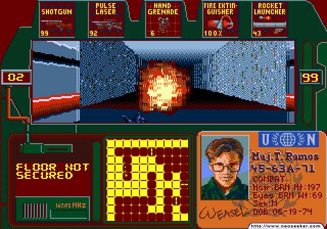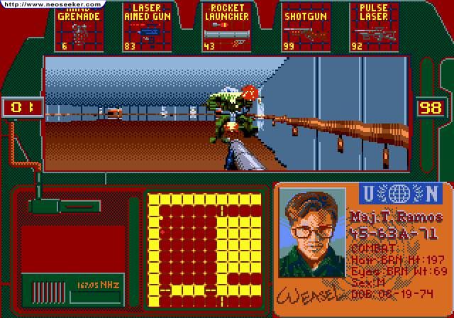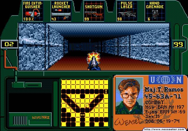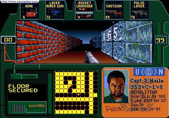 When you first pop the cartridge in, you're treated to the opening music with a spinning Sega logo and the company credits and whatnot as per usual. Then the rather impressive title screen scrolls into view. You hit start and find out that you're the toughest people out there and you find out something has happened on a station somewhere and that a core breach will happen. You simply go in, gain control of it by killing ALL the aliens. Not much of a story to be honest. But first person shooters like this didn't need a good story back in 1994. All you pretty much do is wade through 40 levels of enemies with the occasional boss and kill everything that moves.